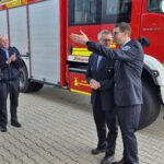 von links nach rechts: Bürgermeisterin Petra Knetemann, Kreisbrandmeister Jürgen Scheel, 1. Stellvertretender Kreisbrandmeister Thorsten Prüsener, Ehren-Ortsbrandmeister Uwe Hilgen, Regierungsbrandmeister Udo Schwarz, Ortsbrandmeister Florian Ötjen-Meyer, Gemeindebrandmeister Rolf Komandel, Feuerwehrausschussvorsitzender Kai Hemmieoltmanns