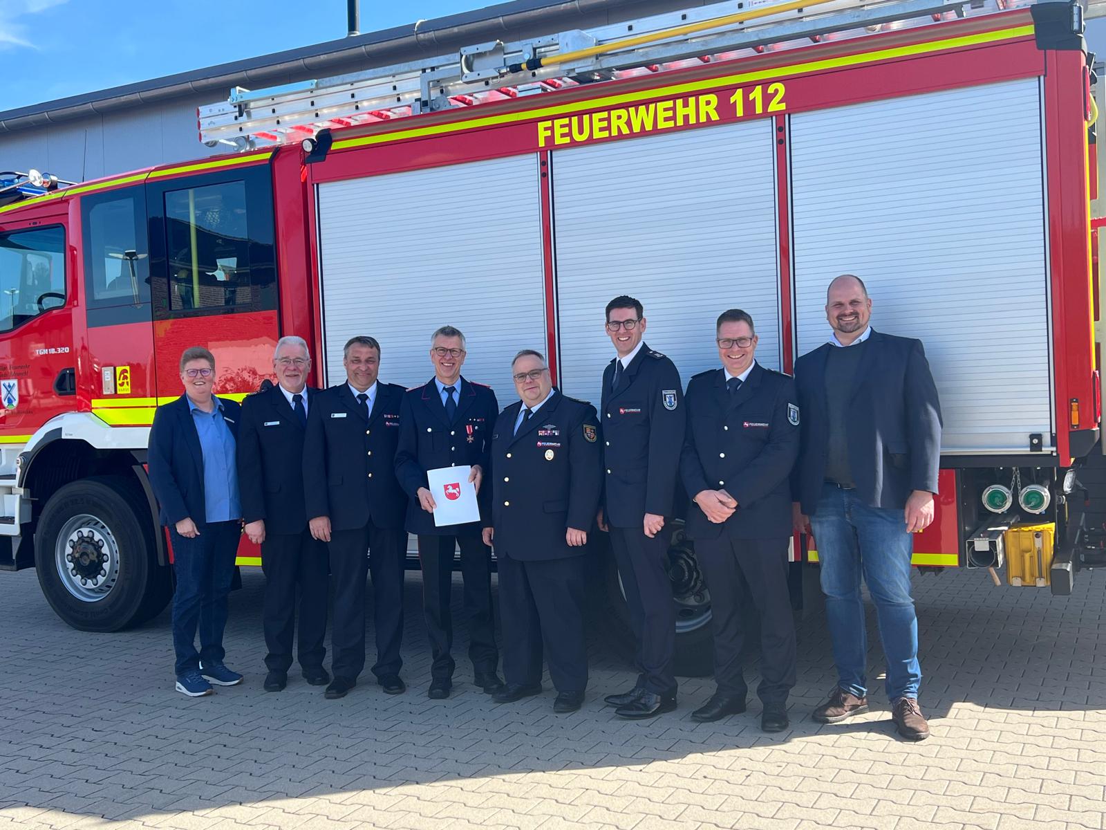 Ein besonderes Highlight der Veranstaltung stellte die Ehrung durch Regierungsbrandmeister Udo Schwarz dar: Für seine langjährigen und herausragenden Verdienste im Feuerlöschwesen des Landes Niedersachsen wurde Uwe Hilgen mit der Ehrennadel in Gold ausgezeichnet. Diese hohe Auszeichnung unterstreicht in besonderer Weise seinen unermüdlichen Einsatz und sein außergewöhnliches Engagement über drei Jahrzehnte hinweg.