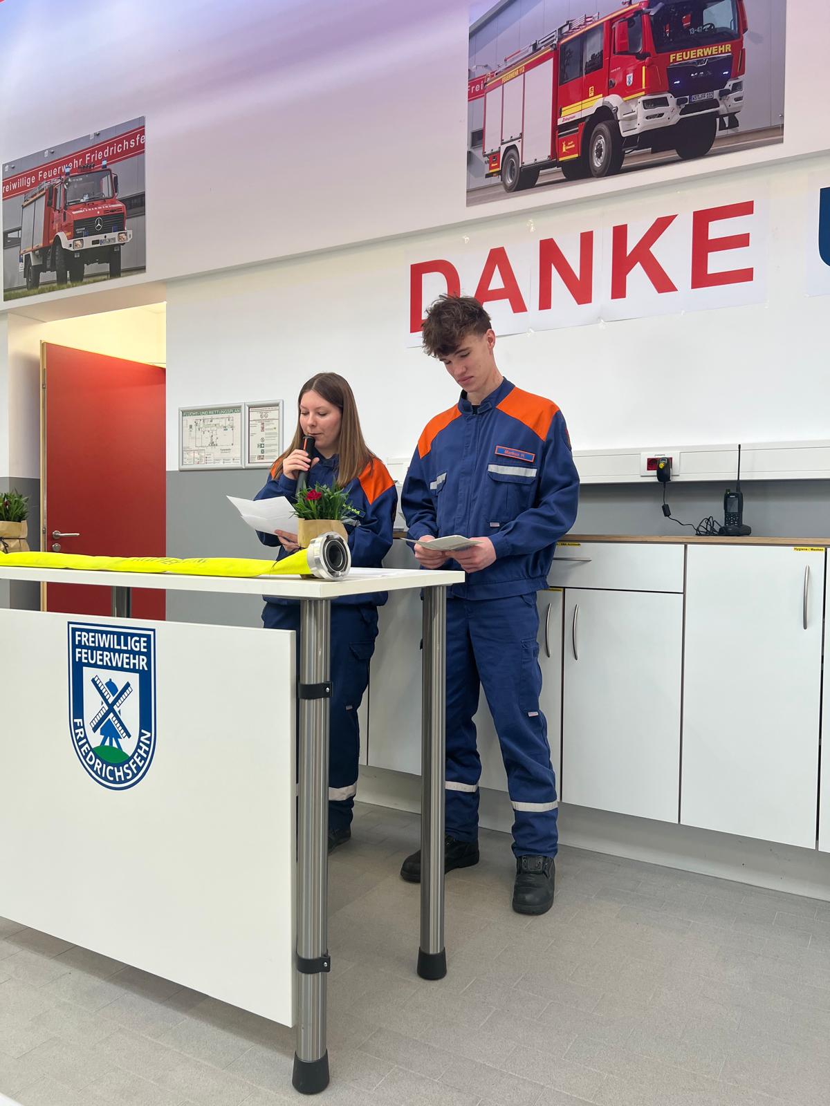 Die Jugendsprecher der Einheit Lotta und Markus dankten im Namen der Jugendabteilung für das immer offene Ohr, seine Unterstützung und das Uwe die Jugendfeuerwehr immer mit als Herzstück der Ortsfeuerwehr angesehen hat.