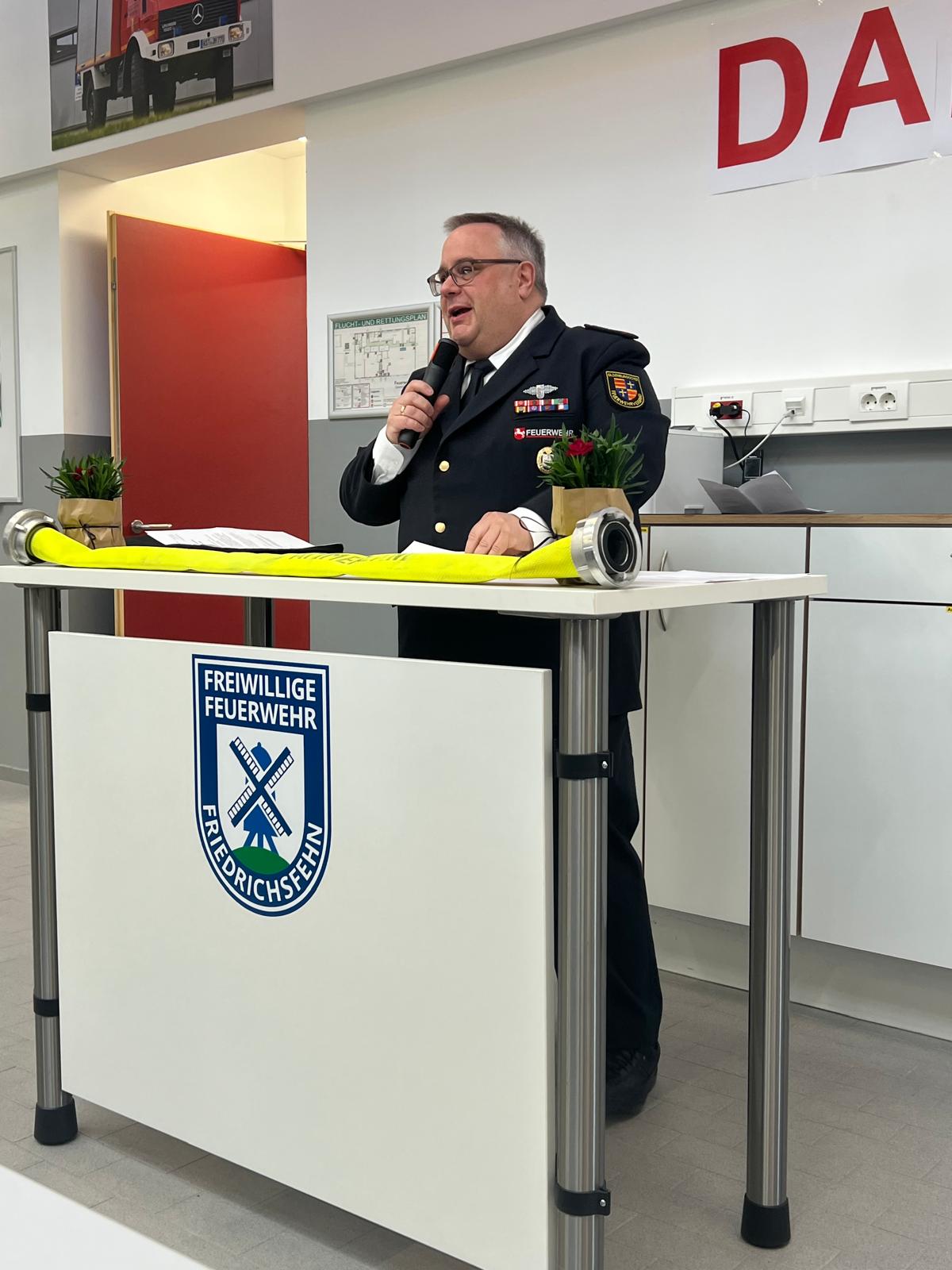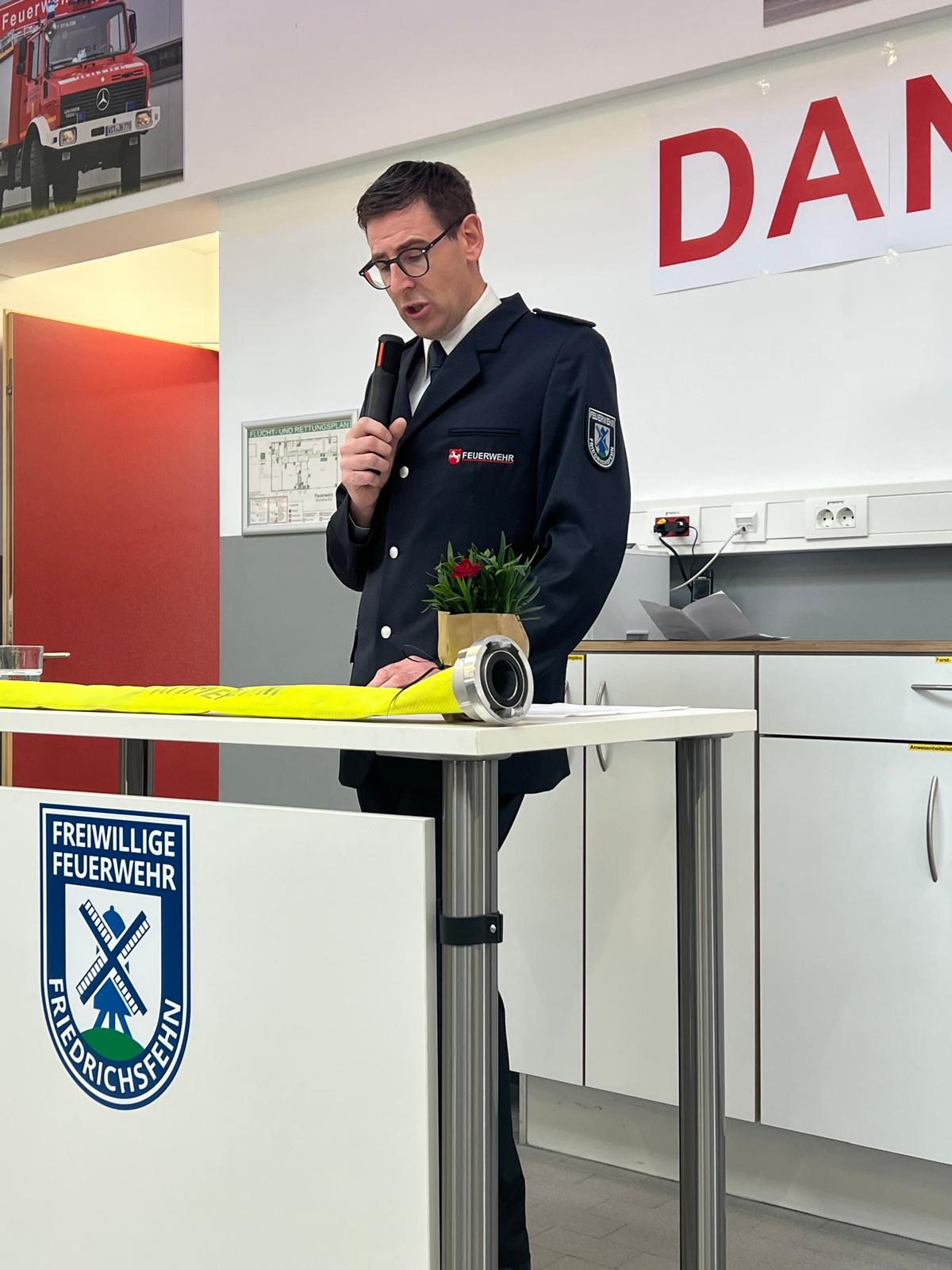 Ortsbrandmeister Florian Ötjen-Meyer dankte im Namen aller Kameradinnen und Kameraden für die stets kameradschaftliche Führung und würdigte die Verdienste von Uwe Hilgen mit großem Respekt und Anerkennung. Das Wirken von Uwe Hilgen hat die Freiwillige Feuerwehr Friedrichsfehn nachhaltig geprägt und wird ihm auch in Zukunft als Vorbild dienen.