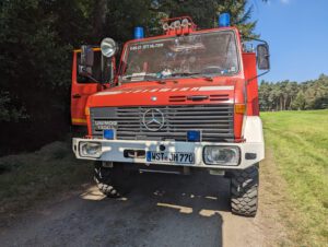 Am 09.09.2023 fand an der Thülsfelder Talsperre im Landkreis Cloppenburg eine gigantische Waldbrandübung in einem Areal von 2,2 Quadratkilometern statt, an der ca. 600 Einsatzkräfte mit 100 Einsatzfahrzeugen teilgenommen haben. Auch wir waren mit unserem Unimog Tanklöschfahrzeug als Bestandteil der Kreisfeuerwehrbereitschaft Ammerland mit von der Partie.