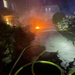 Der zweite Einsatz in der Silvesternacht führte uns um 01:34 Uhr nach Edewecht ins Musikerviertel. Es wurde dort ein PKW-Brand gemeldet, welcher unmittelbar an ein Wohngebäude angrenzte. Aufgrund der Meldung wurden 4 Ortsfeuerwehren zur Einsatzstelle alarmiert.