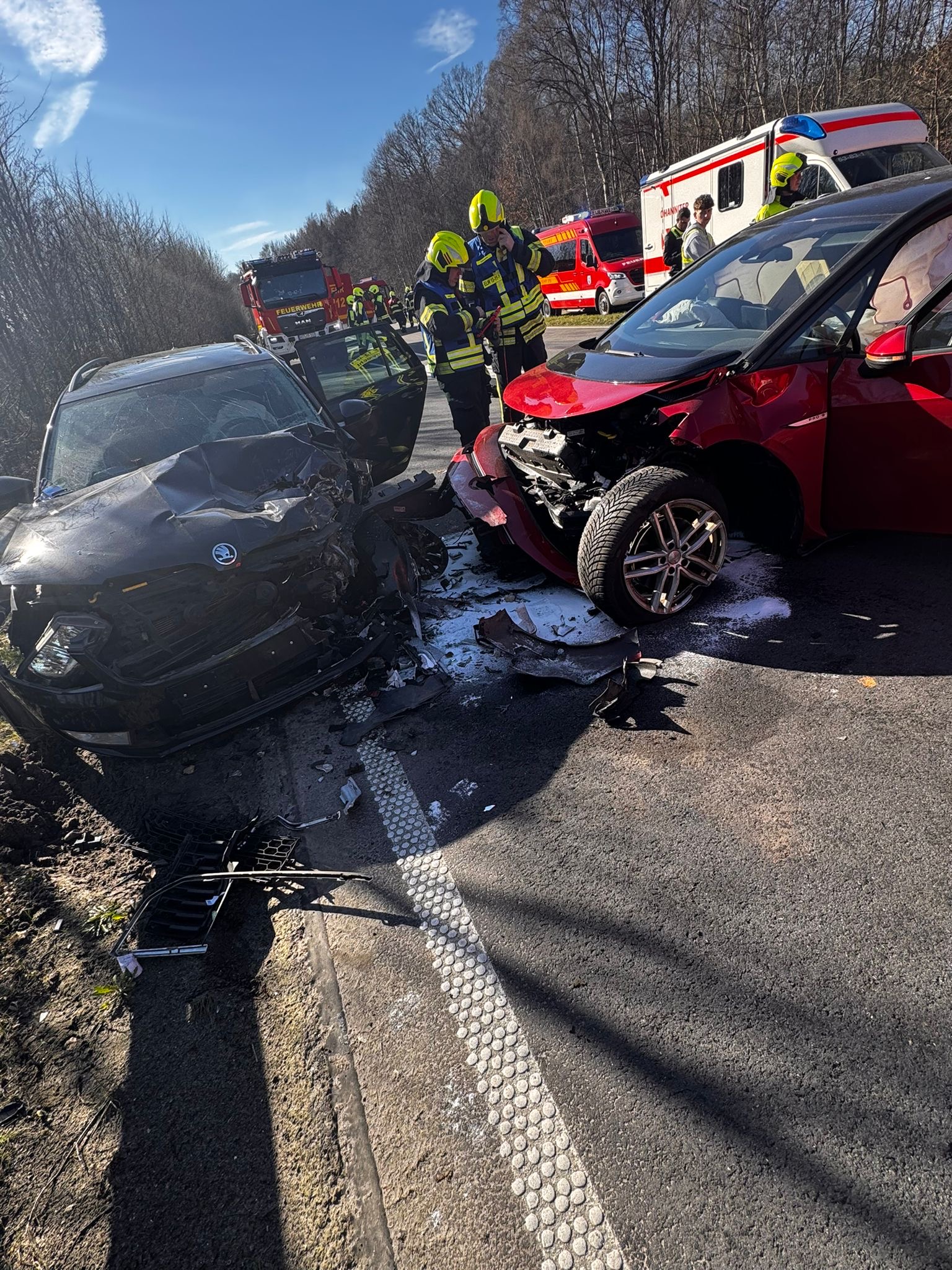 Vor Ort kam es zum Zusammenstoß zweier Pkw. In den beteiligten Fahrzeugen befanden sich jeweils zwei Insassen, darunter zwei minderjährige Kinder.