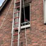 Das Szenario: In einem Einfamilienhaus musste eine verletzte Person, die nicht mehr selbstständig eine Leiter begehen konnte, sicher gerettet werden. Hierfür musste die Person mithilfe einer Trage durch ein Fenster ins Freie gebracht werden – eine Aufgabe, die nicht nur Teamgeist und Koordination erforderte, sondern auch fundierte Kenntnisse in der Knotenkunde.