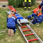 Mit großem Engagement machten sich die Nachwuchsbrandschützerinnen und -brandschützer an die Arbeit, sicherten die Trage und brachten die „vermisste Person“ schließlich erfolgreich ins Freie. Dabei konnten alle Beteiligten wichtige Erfahrungen sammeln, die im Ernstfall entscheidend sein können.